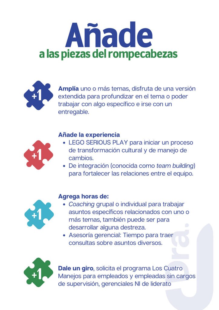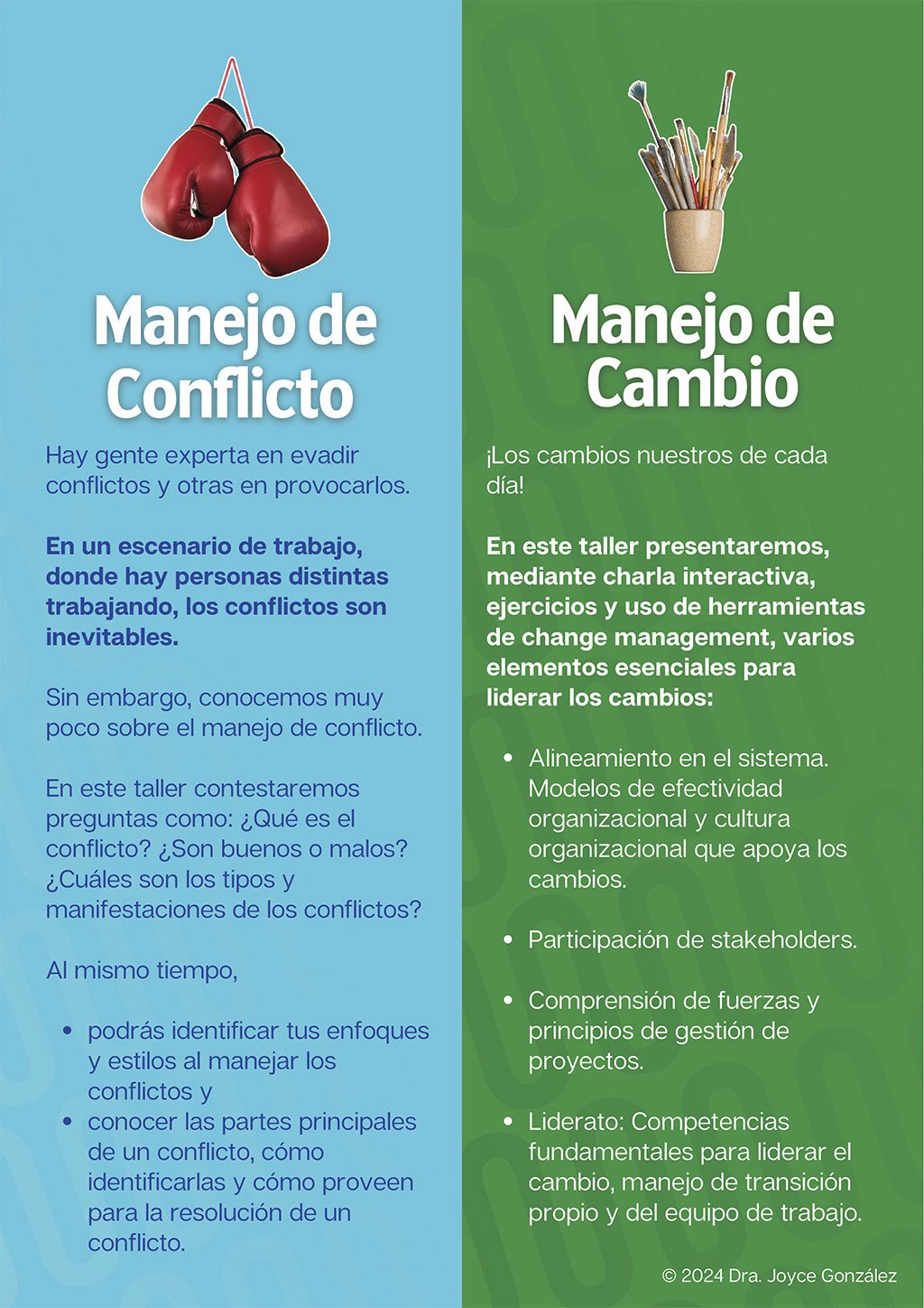 - Combinación perfecta: Brindamos herramientas que incluyen el manejo intrapersonal, interpersonal, intragrupal, intergrupal, intraorganizacional e interorganizacional.